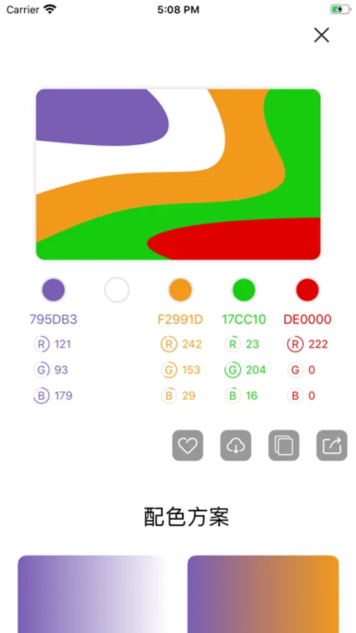 - 支持对颜色搭配方案的收藏、分享、复制、保存。