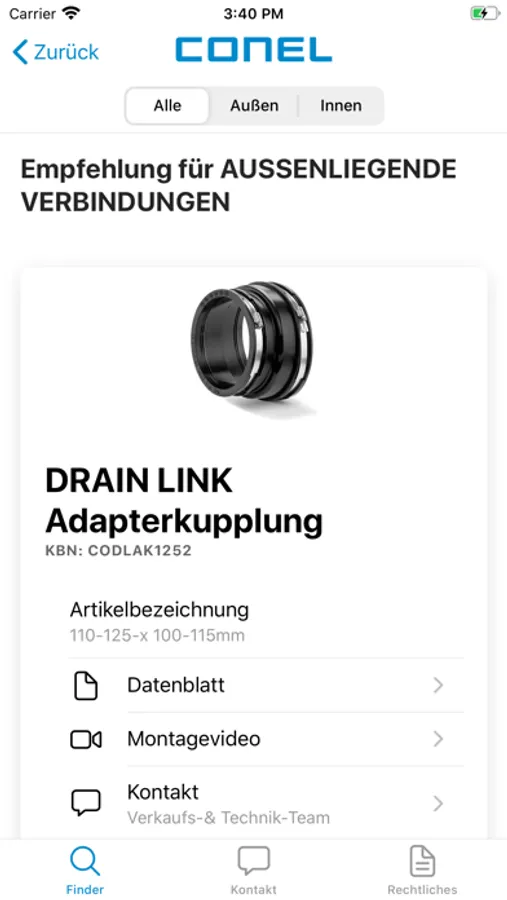 Die Suche nach dem passenden Adapter für das jeweilige Abflusssystem ist jetzt leicht wie nie. Einfach im DRAIN LINK PRODUKTFINDER von CONEL die Merkmale der zu verbindenden Rohre eingeben – und schon ermittelt der Produktfinder den passenden Adapter.