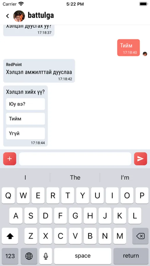 Чатын аппликейшн. RedPoint аппликейшн эрхээрээ нэвтрэдэг бөгөөд хэрэглэгчид хоорндоо гэрээ хэлцэл хийх боломжтой.