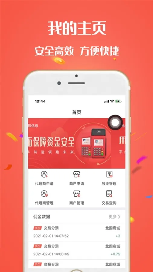 电银助手是电银信息旗下服务商拓展工具,通过移动设备与业务系统的智能交互,实现发展人与商户自动关联,包括代理管理、商户管理、交易管理、收益管理等诸多功能。