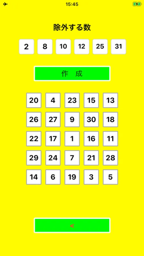 ・作成ボタンを押すと、6X6又は5x5 のマトリクスが表示されます。