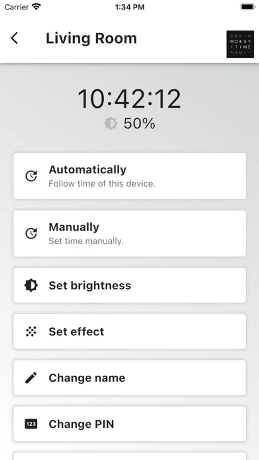 Your perfect portable Wordy Time companion. The app allows to set up and seamlessly manage the Wordy Time wall clock functions like backlit brightness, time, transition effects, security PIN etc…