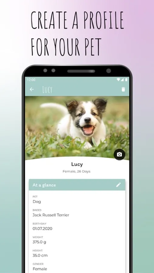 - Save important pet data with a profile picture and medical values (height, weight, fertility)