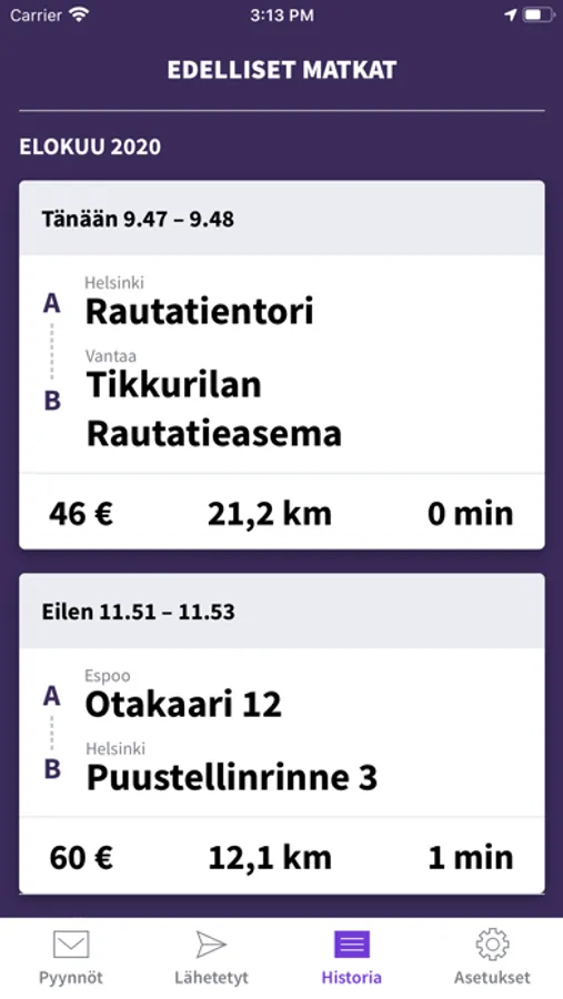 Taksarilla saat puhelimeesi lähialueen asiakkailta tarjouspyyntöjä, joissa on selkeästi esillä noutopaikkojen ja määränpäiden osoitteet sekä karttasijainnit.