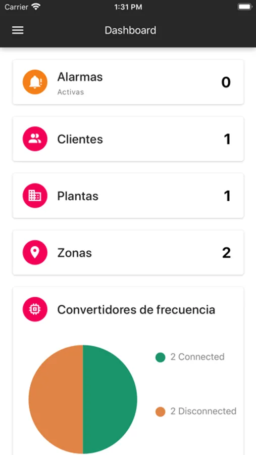 Con la instalación de nuestro hardware de comunicaciones, la aplicación puede realizar la monitorización en tiempo real del estado de los variadores de frecuencia y de cualquier equipo con opciones de comunicación (PLCs de primeras marcas, equipos con Modbus RTU, Modbus TCP, Ethernet,…), incluyendo alarmas, datalogging, avisos en tiempo real, etc.