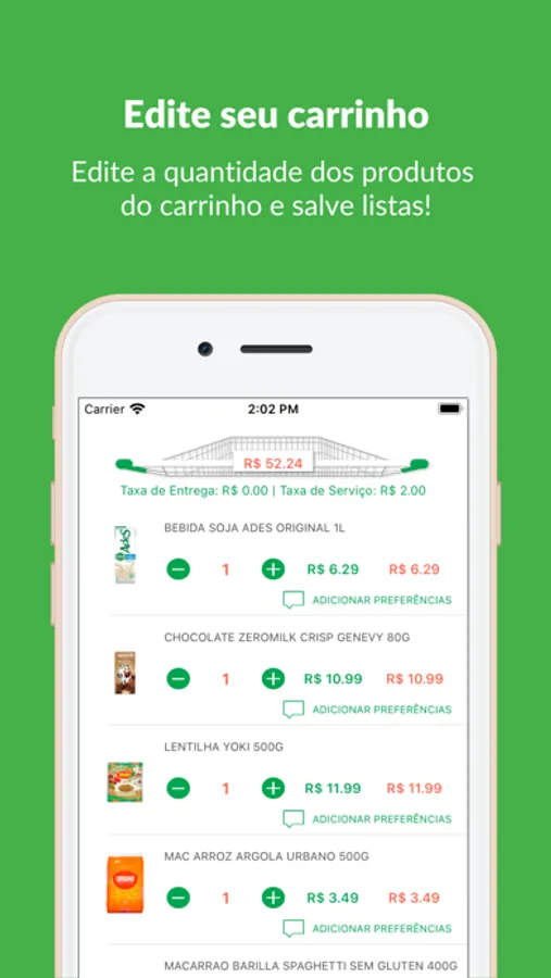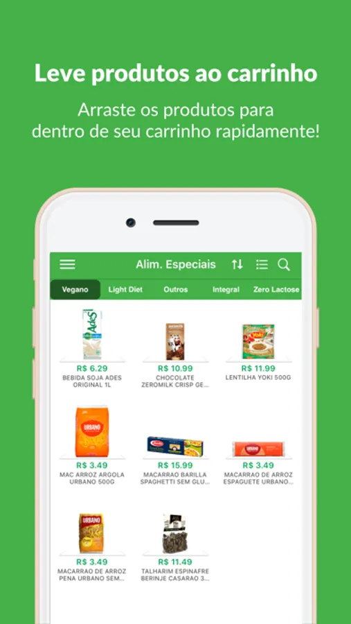• Adicionar produtos no seu carrinho com um simples tocar e arrastar.