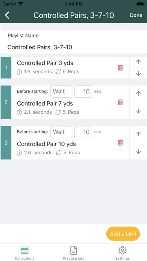 Create a "playlist" of drills to match your daily practice routine. Then you can perform your routine without touching your phone. No more fumbling with a timer during practice sessions.