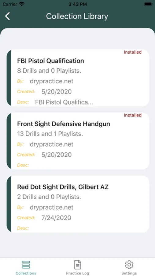 Dry Practice Pro stores and organizes your drills in "Collections." You can download collections created by others, and upload your own collections to share with the community.
