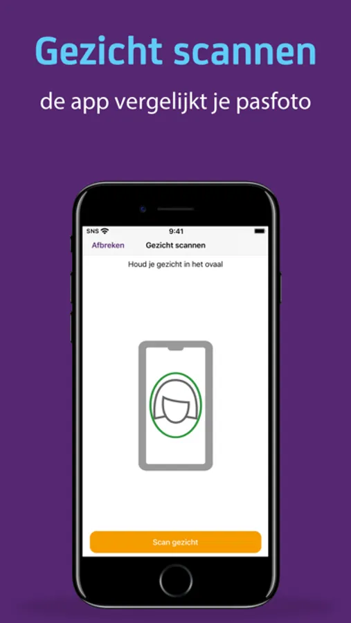 3. Je scant je gezicht. De app vergelijkt je gezicht met de foto in je identiteitsbewijs.