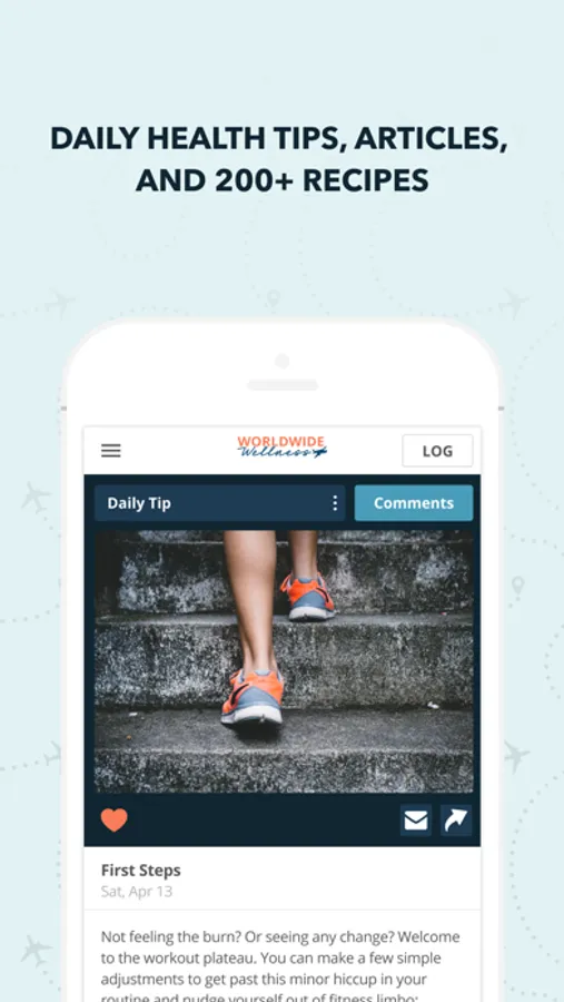 • Connect Worldwide Wellness with Apple's Health App to automatically import your step count