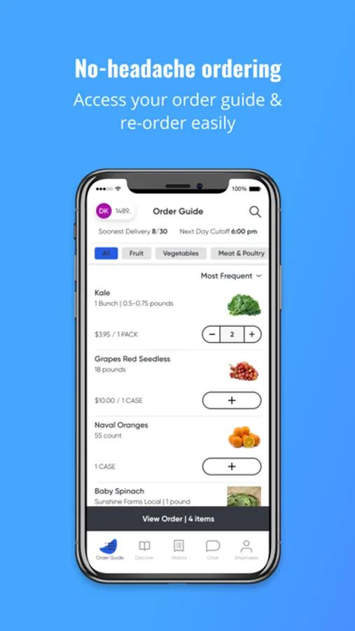 - Keep everything together: delivery days, cutoff times, order updates, and promotions all in one place