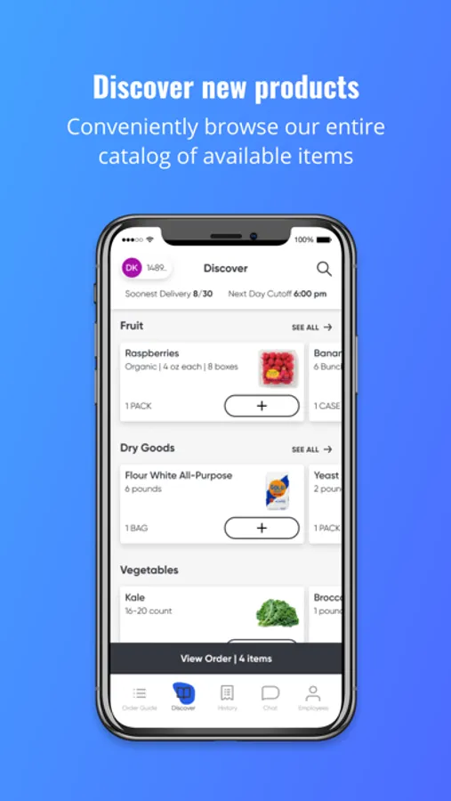 Our mobile app lets you search our complete product catalog, manage and update your ordering guide, and buy what you need at the moment you need it. It’s part of our commitment to giving you an ordering experience you’ll love.
