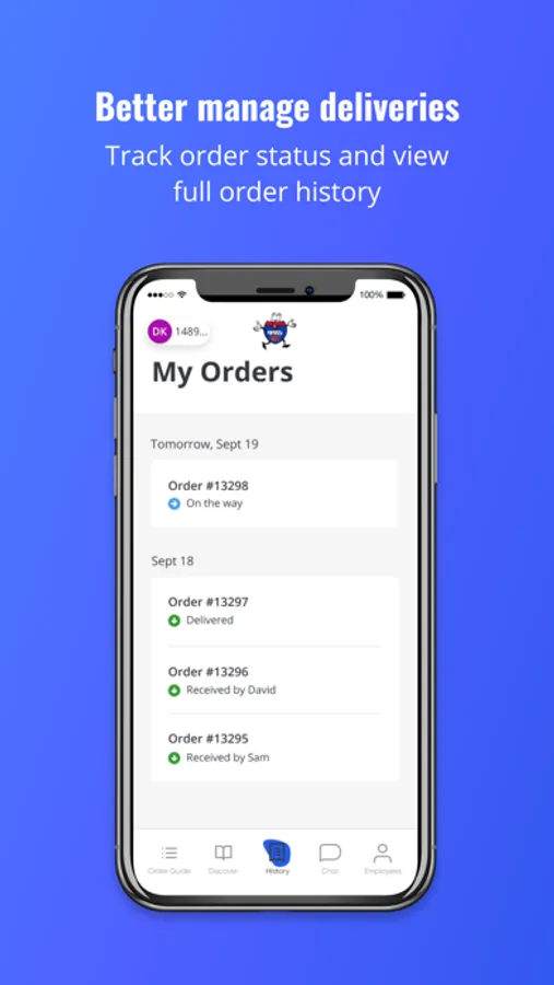 - Better manage deliveries: track order status and view full order history
