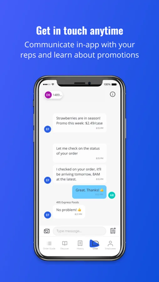 - Get in touch anytime: communicate directly with your 495 Express Foods rep in the app