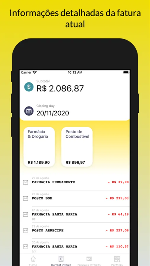 • Fatura detalhada