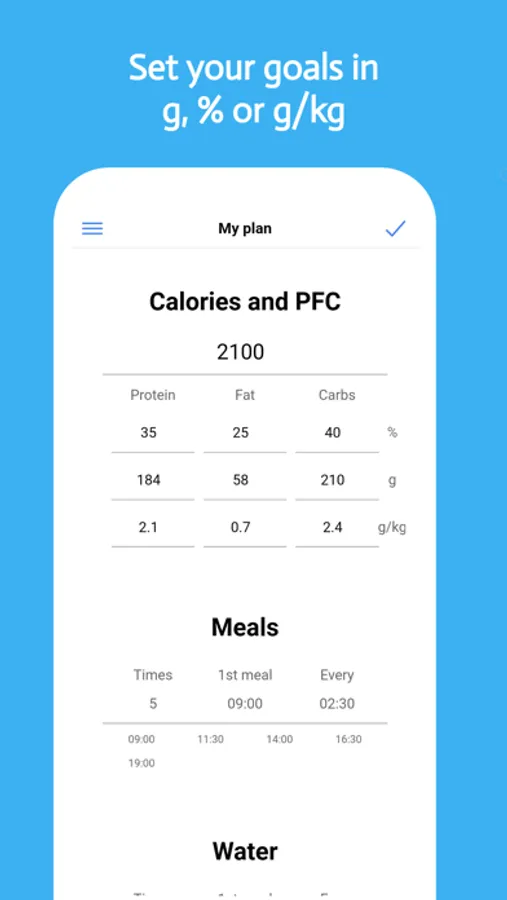 Track your progress toward nutrition, macros, water, fitness, and weight loss goals. EatFit is more than just a calorie or food tracker and health app. Besides counting calories, you can plan meals for the next day or a week. You will stay as close as possible to your calories, macros, and nutrition. Want to know how many grams of protein, fat, and carbohydrates per kg of weight you eat (g/kg)? The app can calculate that. Grams per lb (g/lb)? No problem.