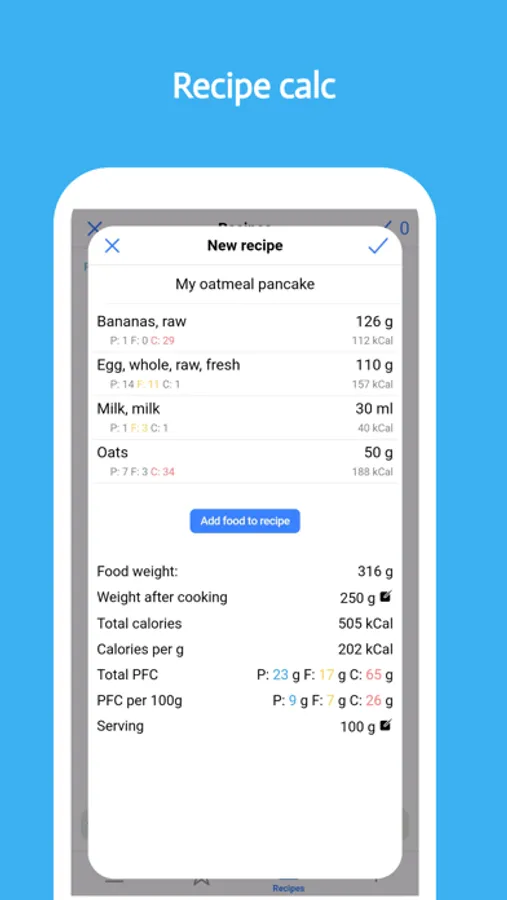 * Add Your Own Foods/Recipe Tracker - Save recipes and take weight after cooking into account