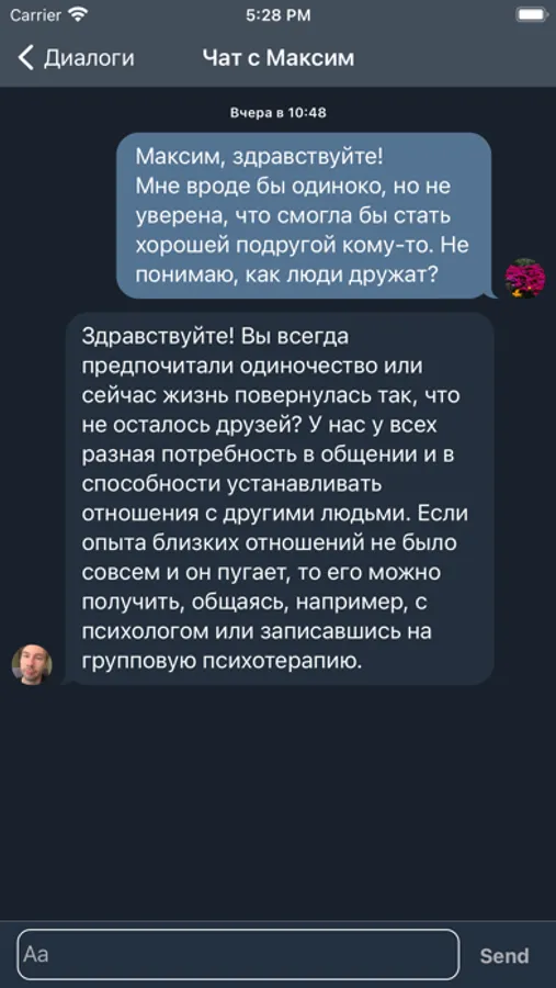 Человек не должен быть один. Тем более в сложные времена, когда вокруг неопределённость и кризис. Всегда нужен кто-то с кем можно поговорить или помолчать. Кто-то, чьи чувства и мысли вызывают отклик: «Надо же, а мы похожи. У меня тоже это было, я тоже так чувствую». Мне повезло, что у меня есть такие люди, но жалею, что их мало.