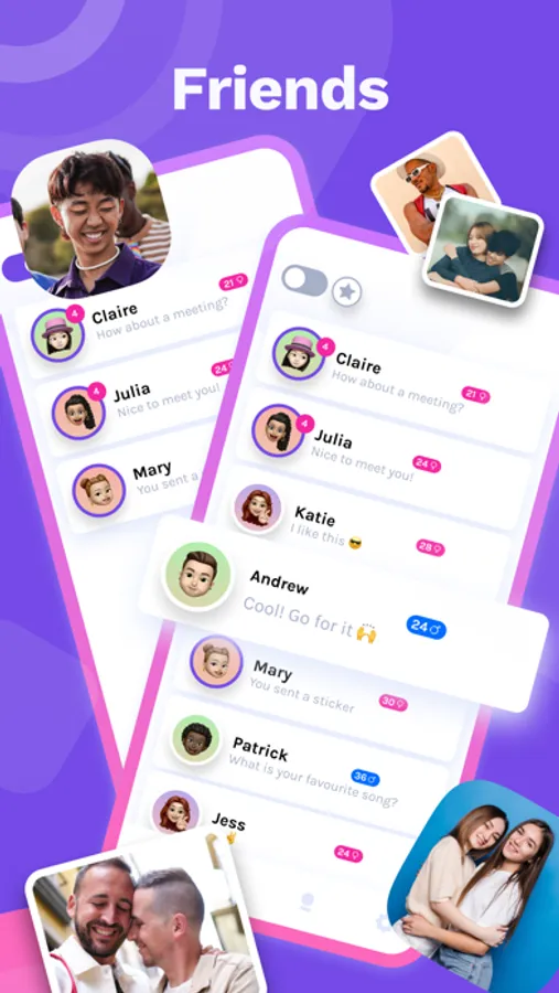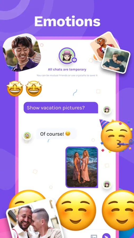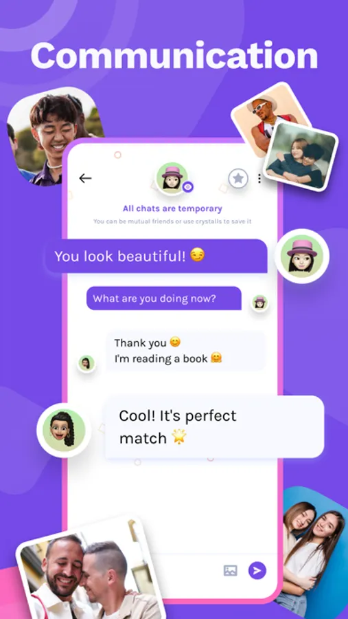 It’s a convenient format for chatting with anyone. It's easy to send and receive photos, view and evaluate profiles, meet people and just have a good time.