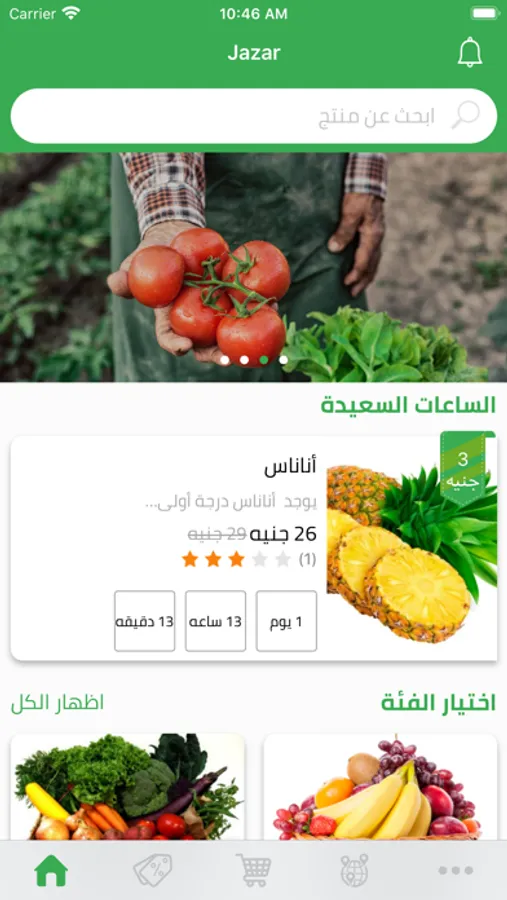 Jazar is an app for selling vegetables, fruits and groceries that features fast, scheduled delivery, ease of use and simplicity