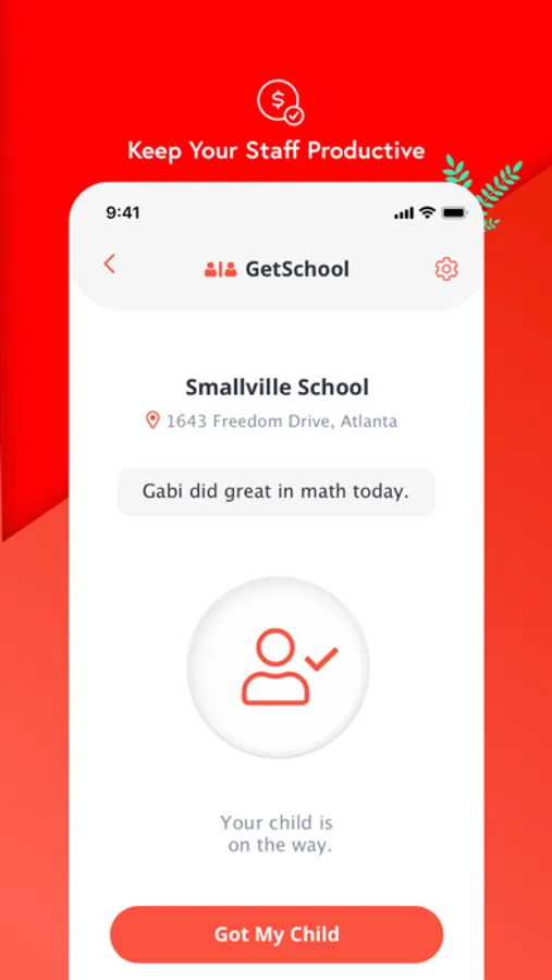 • Secure and Efficient -- Phone calls, notes, or P.A. announcements waste admin time, and expose student information. GetSchool encrypts data and ensures kids are released to approved caregivers.