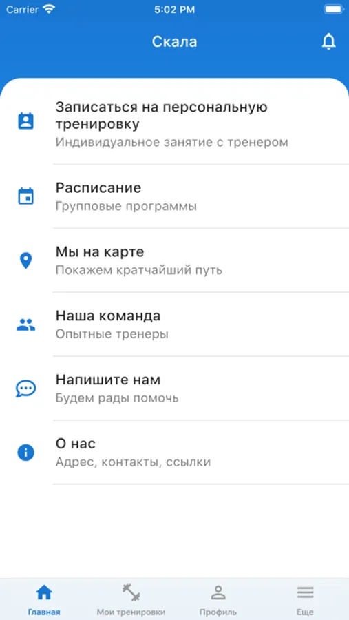 Мобильное приложение Cпортивного центра «СКАЛА»: