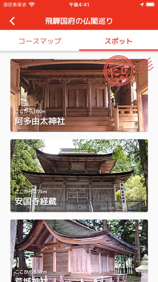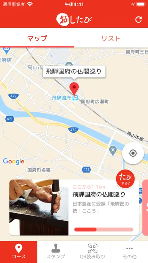・「現在地から探す」で近くのコースやスポットを検索できます。