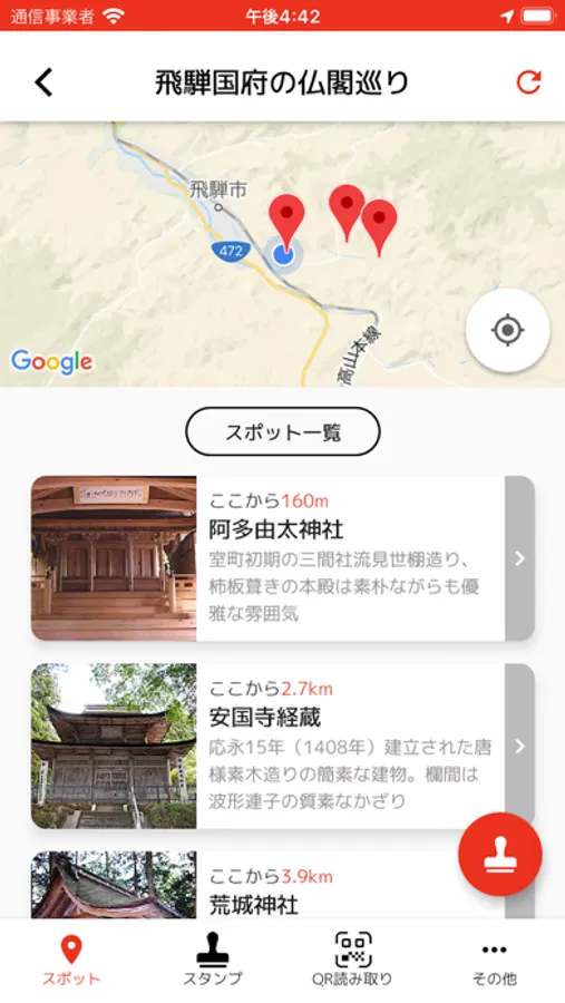 ・パンフレットや看板のQRコードからおすすめスポットの情報が取得できます。