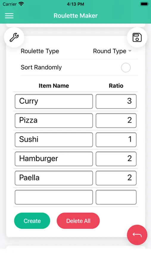 There are simple roulette that you can select the number of items, and normal roulette that you create by entering the item name and percentage.