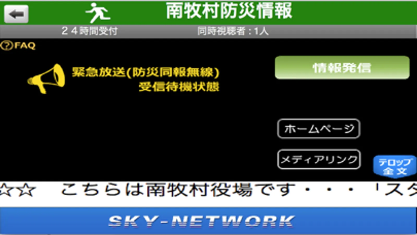 パスワードを入力し、スタッフモードでアプリを起動すると、このアプリをビジターモードで起動している他のモバイルに向けて放送をする機能を使用することができます。