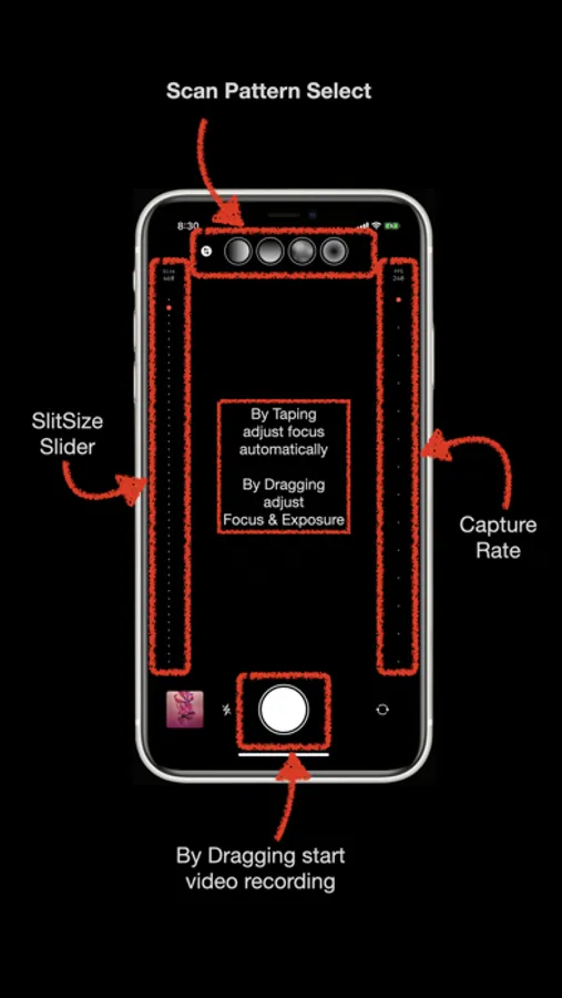 • Eight kinds of slit scans are possible with four kinds of slit patterns and reverse scan.