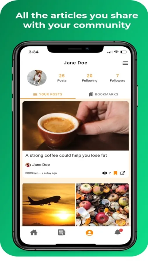 My feed: Share information and exchange opinions by sharing the articles you like on your feed. Edit the title and description to your opinion and post it. Your followers can see those articles on their feed, like or re-post it.