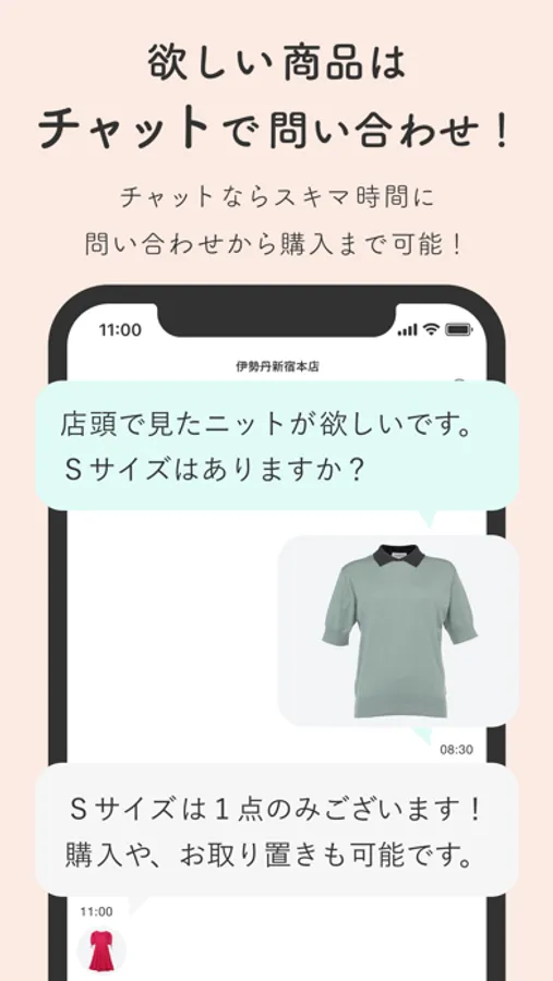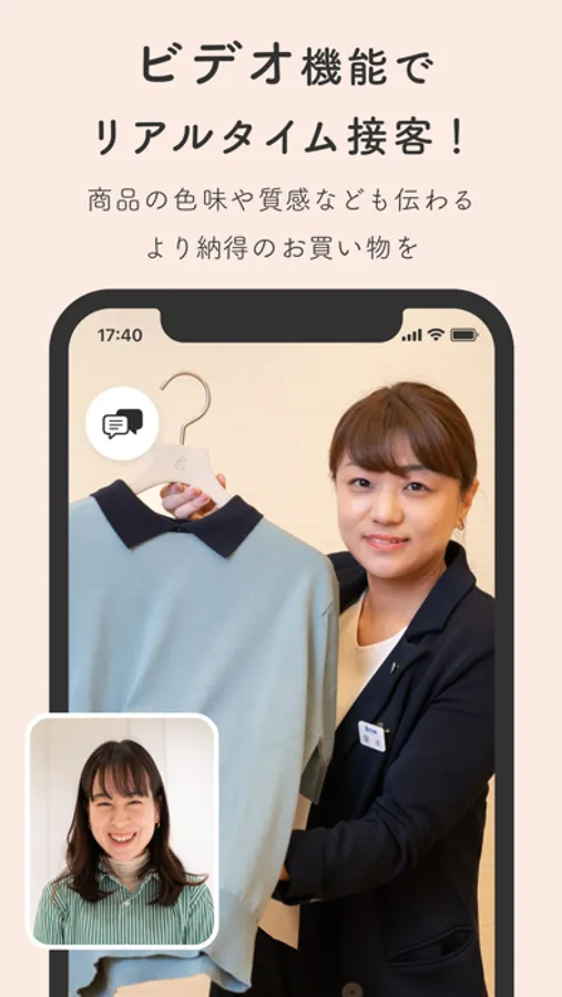 チャット接客やビデオ接客で、店頭にしかない商品もオンライン決済でお買い物いただけます。