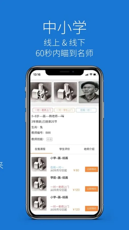 秒定名师是一款老师必备的接单神器,老师把自己的特长和价格以及授课方式进行展示,让用户足不出户60秒内即可找到想要的老师,合作入驻老师针对性分为K12中小学课外辅导和才艺辅导 ,让老师在家自由轻松接单教学的快捷约课。