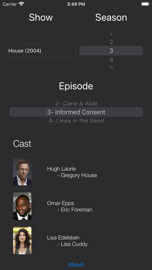 Look up cast information per episode quickly.