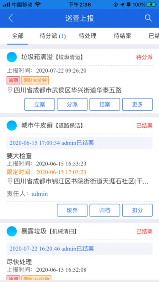 武侯城管环卫综合智慧监管信息平台,包含了以巡查上报,巡查记录,监控中心等基础功能,同时拥有对人员的监控等额外的功能。