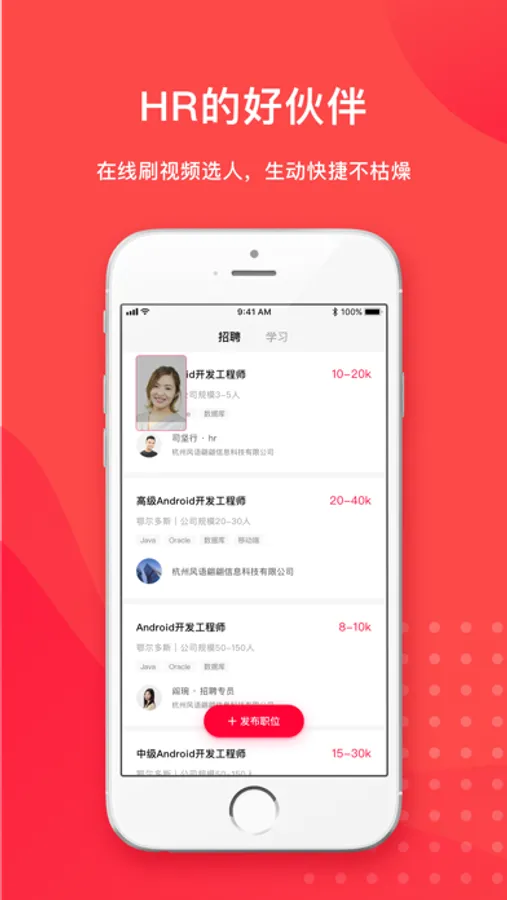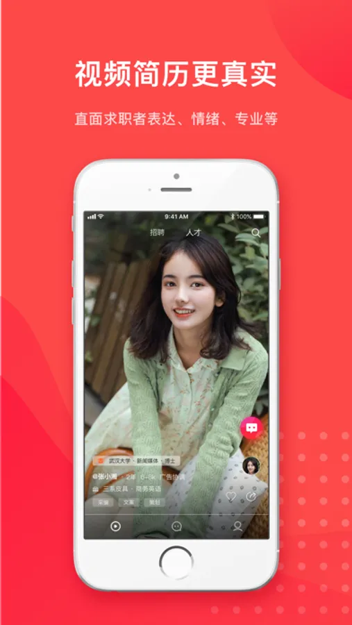 基于短视频简历的求职招聘平台, 认证企业发布招聘职位,在线刷短视频简历招聘人才;