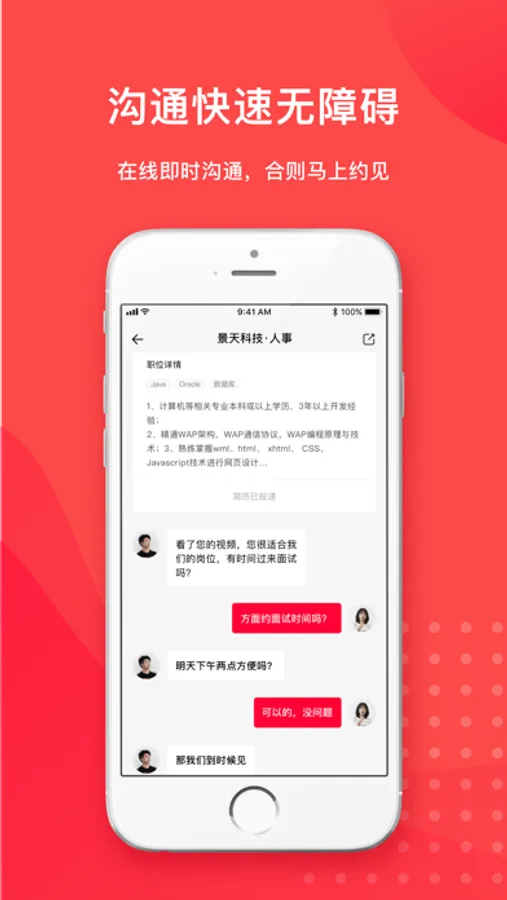 牛人完善简历,上传视频介绍,刷职位与企业老板直接线上沟通。