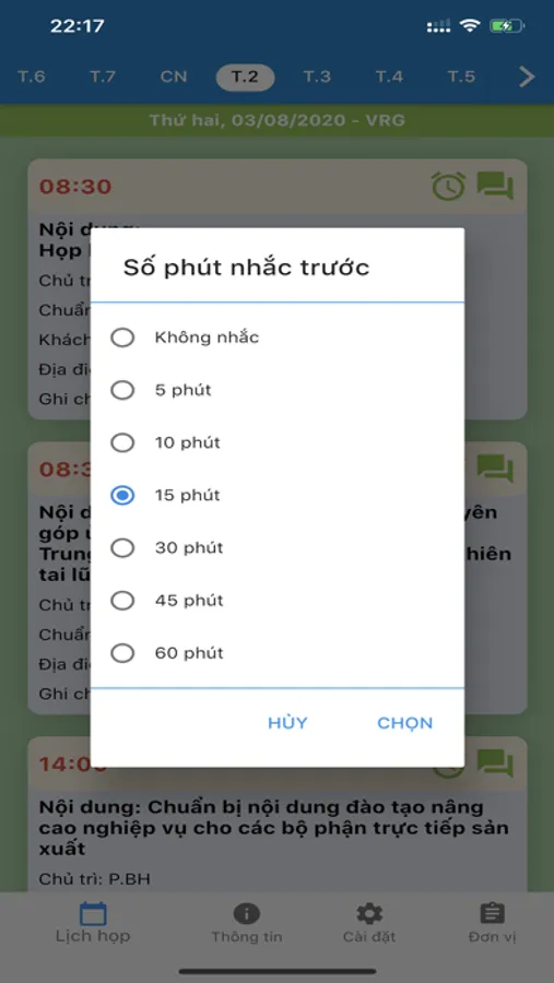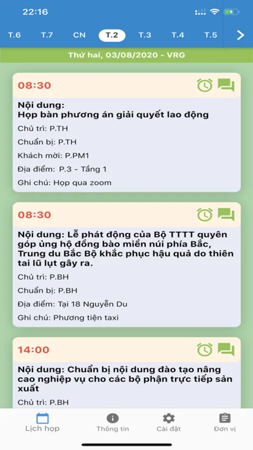 • Xem danh sách lịch họp theo ngày