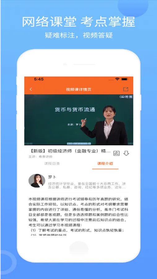 视频课程 :讲师真人录制高清视频课件,备考讲解、核心考点、真题解析讲解