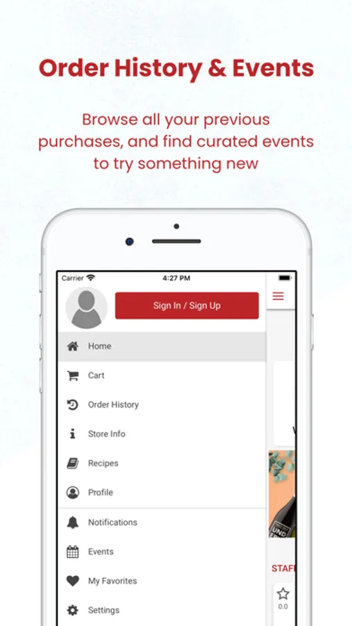 With the App you can browse for the wines & spirits available in the store, and also order a delivery or pickup.