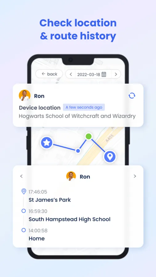 GPS location tracker - With the high-accuracy location tracker, you can track your child's location on the map and see their historical route for the day. Ensure your child is stay safe and they won't visit any high-risk places.