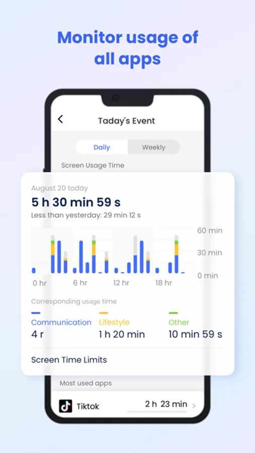 Real-time monitoring - Cast your child's device screen to your phone in real-time to find out what apps they're using in school and the use frequency to prevent them from getting addicted to their phone.