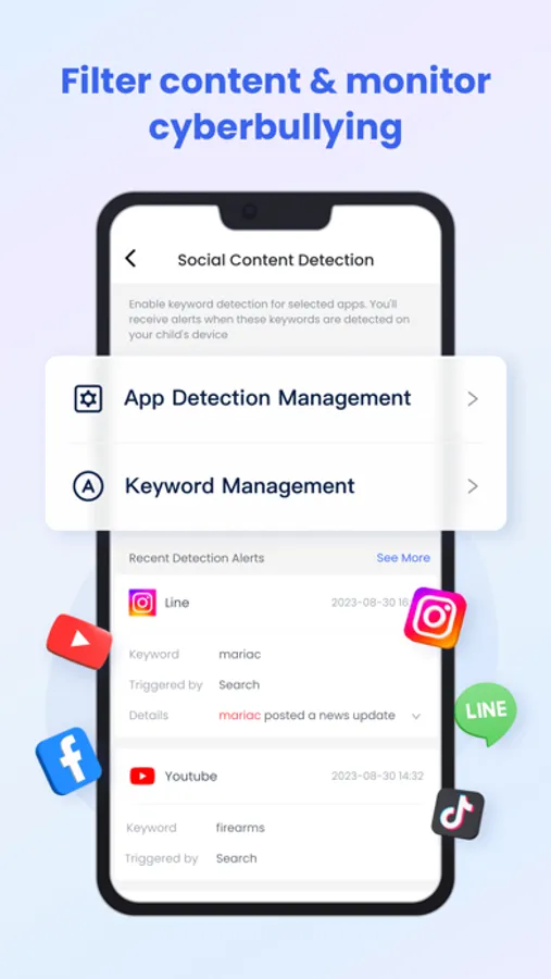 Sync app notification - Real-time sync function helps you to know more about your child's chat on social media like Facebook, Instagram, Messenger, etc. Help your child to stay far away from cyberbullying and online fraud.