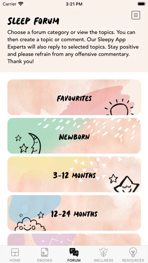 The app also has a forum for all parents to share questions, tips and techniques on baby sleep for newborns all the way to toddlers. Our baby sleep experts will answer selected questions as well.