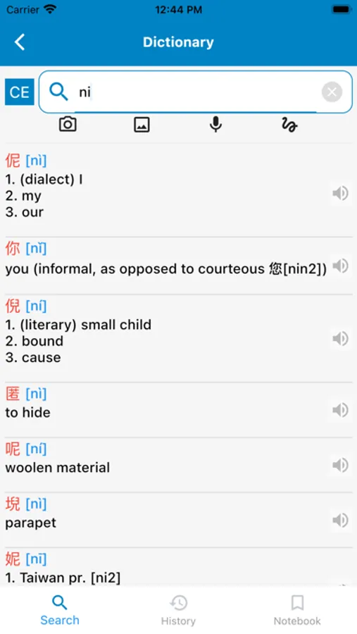 * Fast and accurate translation dictionary with handwriting, image, voice recognition.