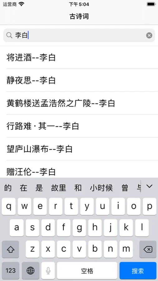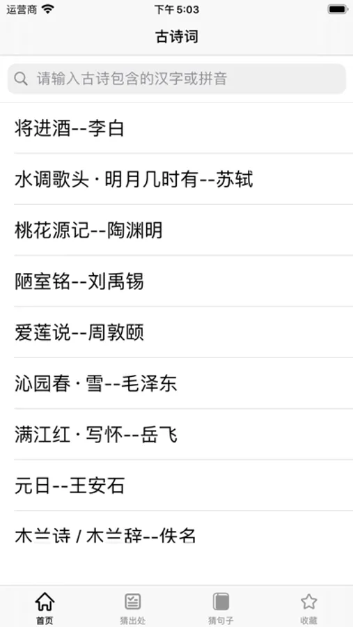 可以输入作者或者诗句的关键字,快速搜索想要找的诗词,获取诗词的准确信息。