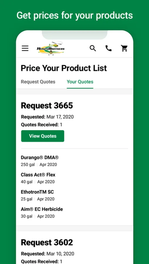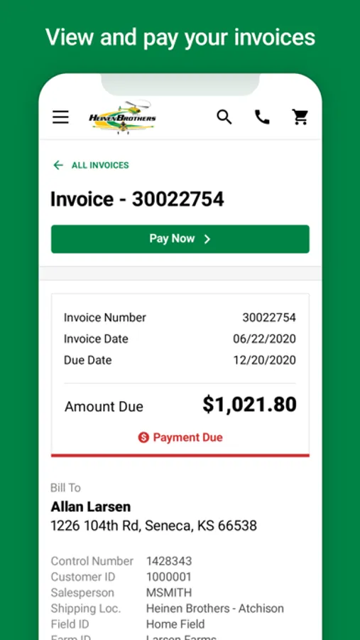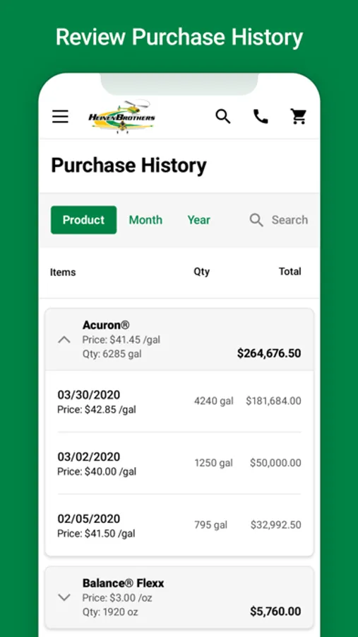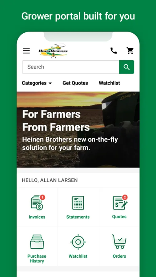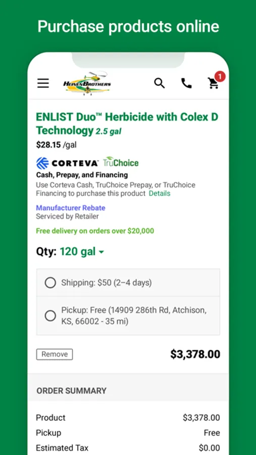 • Conveniently purchase the products on your mobile device. Pay using credit card, ACH, John Deere Financial, Rabo, or your Heinen Brothers account!