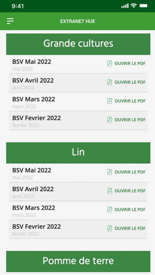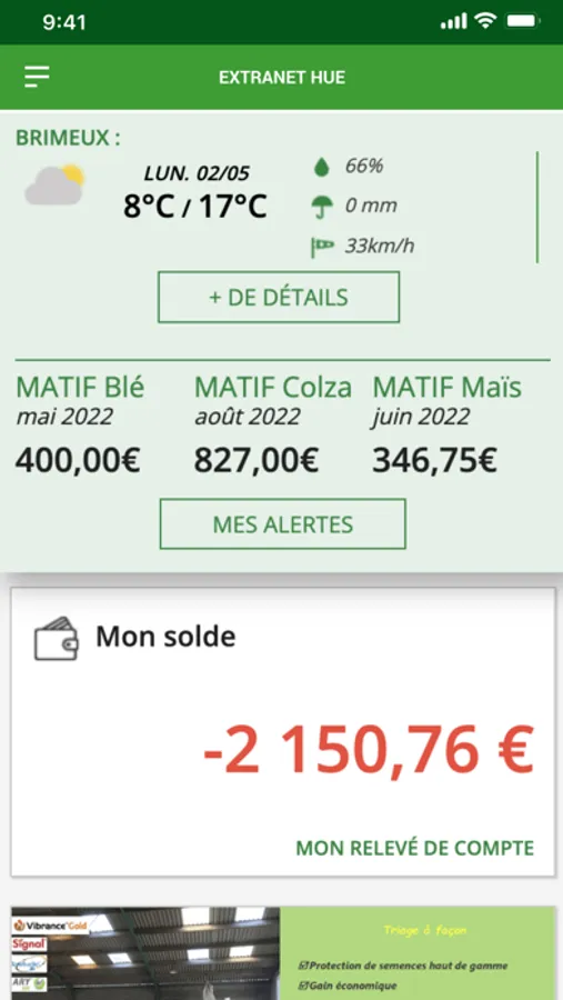 L’application mobile des Établissements HUE, négoce agricole du Pas-de-Calais.