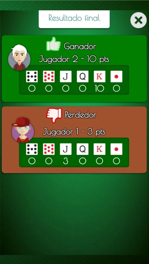 En este juego se utilizán 5 dados de póker, los cuales irás tirando a lo largo de distintas jugadas.
